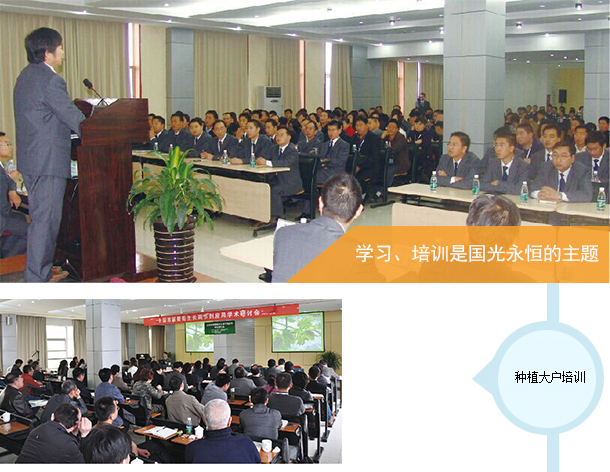 董事長原來是師范校的教師,他把教書育人也帶到了國光企業(yè),從創(chuàng)業(yè)初期就重視對員工進行培訓(xùn),而且還編寫技術(shù)資料對經(jīng)銷商和用戶進行培訓(xùn)。早年的手寫保鮮劑資料就是一個例證,創(chuàng)業(yè)至今從沒有停止過對員工和用戶的培訓(xùn),每年新生入公司要進行至少一個月的培訓(xùn),員工每兩個月要培訓(xùn)一次,年底全體員工還要學(xué)習(xí)培訓(xùn)近一個月。不僅對員工是這樣,國光每年 還把經(jīng)銷商、種植戶請到公司來培訓(xùn)學(xué)習(xí)。國光每年10月份起各種培訓(xùn)會議就不斷。這種學(xué)習(xí) 文化、學(xué)習(xí)型企業(yè)不僅培養(yǎng)了大量的優(yōu)秀員工和經(jīng)銷商,還給種植戶和同行留下了深刻的印象, 稱國光是業(yè)內(nèi)的黃浦軍校。