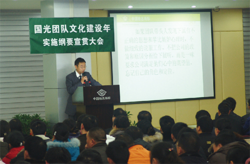 隨著企業(yè)的進一步壯大,營銷模式逐步轉(zhuǎn)型,技術(shù)服務(wù)的加強,國光品牌有了進一步的提升。同時注意到國內(nèi)一些企業(yè)在短期行為的驅(qū)使下,不重視產(chǎn)品質(zhì)量、不講誠信,導(dǎo)致企業(yè)壽命短。而世界上重視產(chǎn)品質(zhì)量和品牌的知名企業(yè)大都有百年以上的歷史。國光基于這些感悟,在總結(jié)國光發(fā)展的成敗得失和類比剖析同行業(yè)基礎(chǔ)上,形成了『做百年、做品牌』的國光企業(yè)理念,并用這一理念去指導(dǎo)、規(guī)范『做質(zhì)量、做誠信、做特色、做服務(wù)、做祥和、盡社會責(zé)任、重企業(yè)文化、重人才培養(yǎng)』的子理念行為,從而達到用品牌取勝,百年不衰。