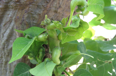 盆架子木虱,刺吸式口器害蟲,屬同翅目、木虱科昆蟲,也是一種典型的造癭昆蟲。在廣東、海南、福建地區(qū)的盆架子上危害較重。受危害的盆架子,葉片正反面突起呈囊狀蟲癭...