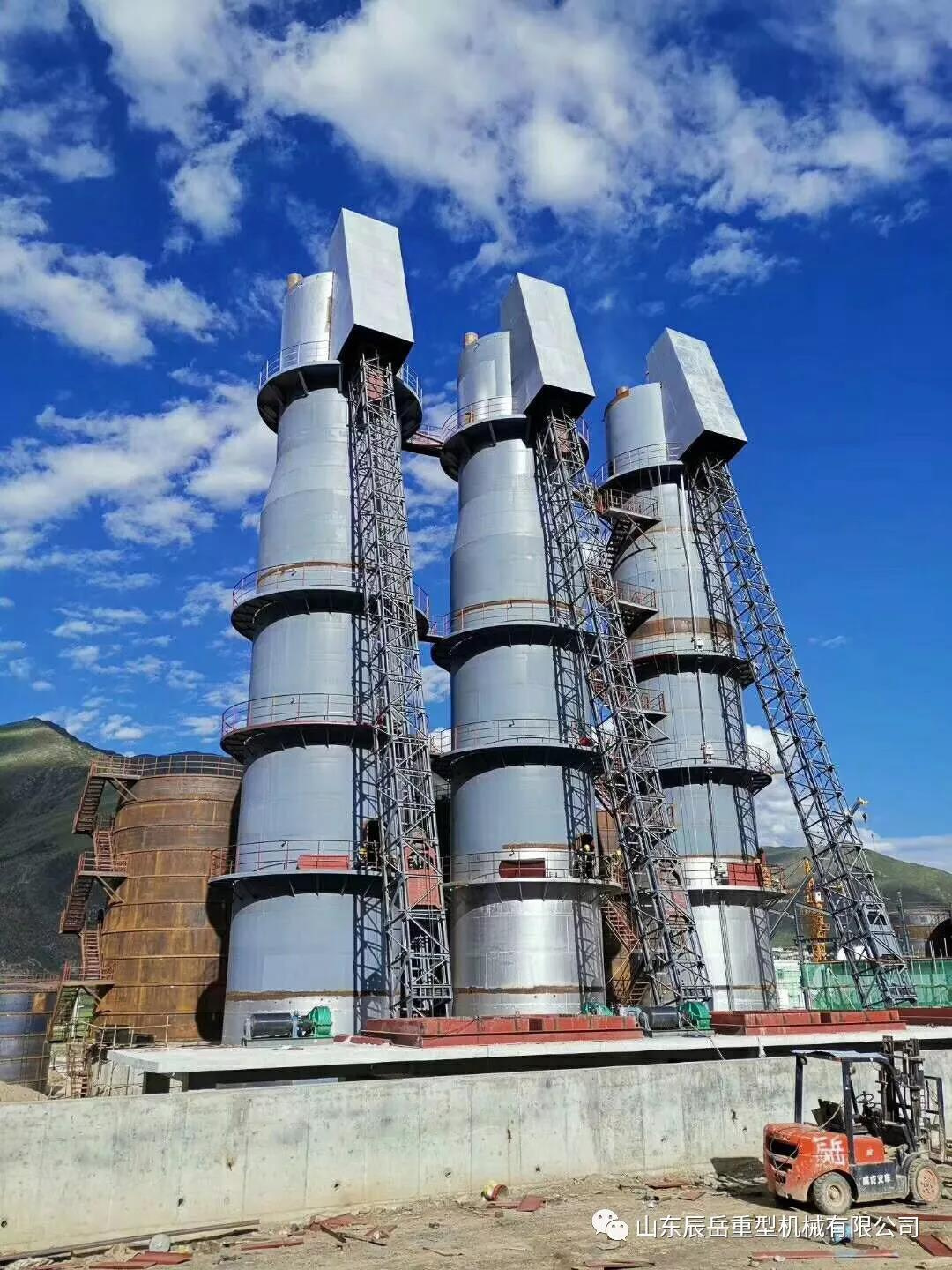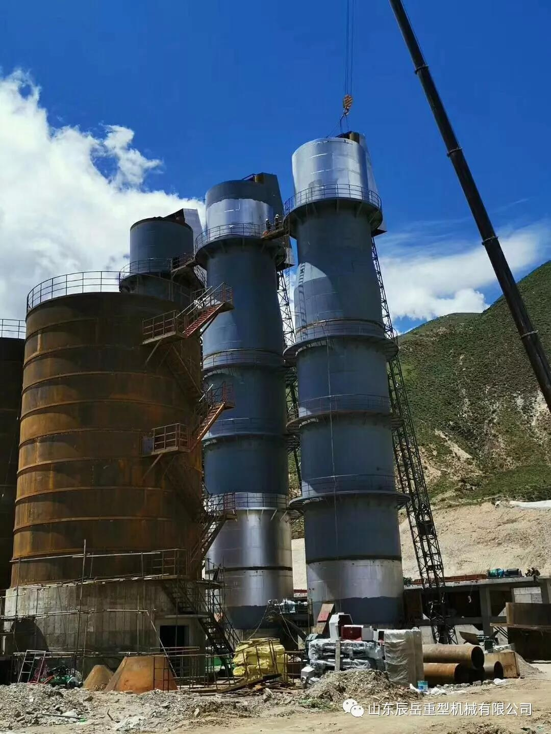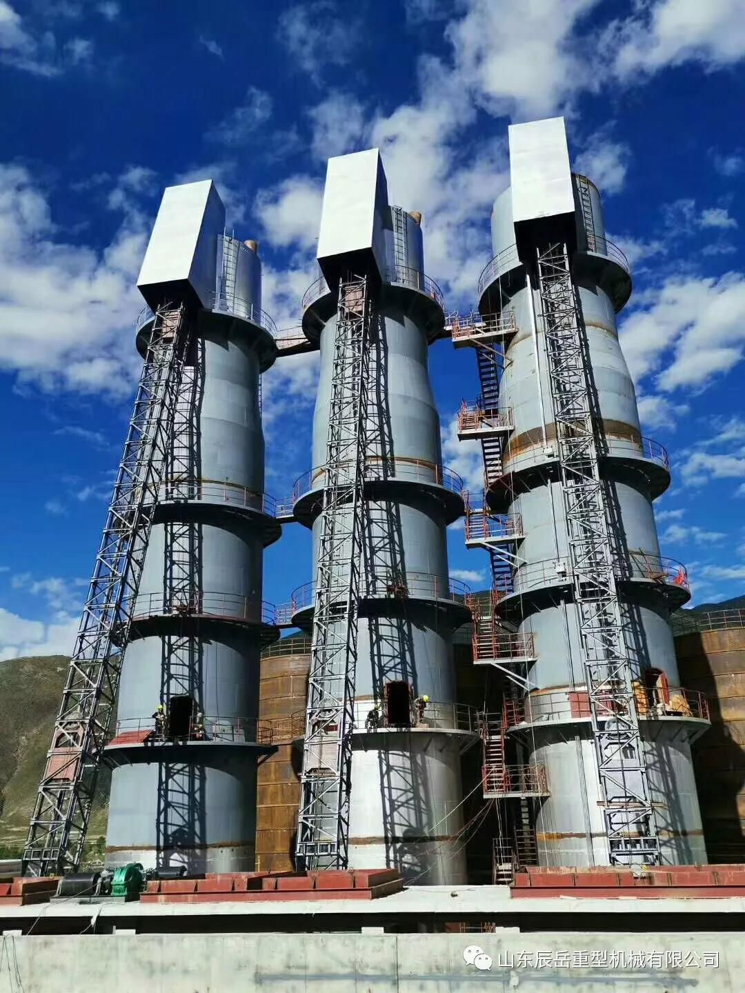 2019年7月24日,山東辰岳重型機(jī)械有限公司西藏工地三支石灰窯歷時五個月全部吊裝完畢。