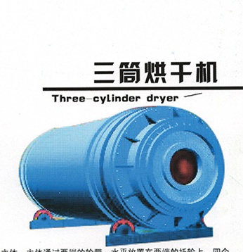 三簡(jiǎn)烘干機(jī)是由三個(gè)不同直徑的同心圓、彼此相套,組合而成。為烘干機(jī)的主體,主體通過(guò)兩端的輪帶,水平放置在兩端的托輪上,四個(gè)調(diào)速電機(jī)及減速機(jī)分別驅(qū)動(dòng)兩瑞的托輪,使烘干機(jī)繞其旋轉(zhuǎn),從內(nèi)筒入料,回轉(zhuǎn)推進(jìn),轉(zhuǎn)到中筒推回,再由中筒轉(zhuǎn)到三筒推進(jìn)排出。由于采用套簡(jiǎn)式結(jié)構(gòu),簡(jiǎn)體長(zhǎng)度大大縮短,占地少、土建省、套簡(jiǎn)式結(jié)構(gòu)形成了自身保溫,筒體散熱損失大幅度減少,熱效率大大提高,比相同規(guī)格的單筒烘干機(jī)熱效率提高55%。