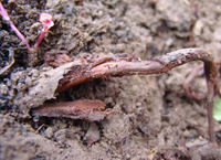 病菌在病根和土壤中越冬,第二年遇高溫高濕性氣候時發(fā)病。病菌經(jīng)工具、雨、水、害蟲傳播,皮孔、傷口入侵。主要為害根。