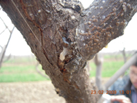 冬季在樹體病枝上越冬,或者隨病枝病葉等殘體在土壤中越冬;第二年春季溫度4-20攝氏度時發(fā)病,3-4月最為嚴(yán)重,到5月份隨氣溫升高而減輕。