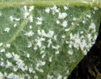 以成蟲、若蟲群集在葉背、嫩梢上刺吸危害,棲息時頭翹起,有時可見數(shù)十頭群集在新梢上,排列成一條直線;引起被害植株發(fā)生煤污病或嫩梢萎縮,畸形等,嚴(yán)重影響植株的生長和發(fā)育。