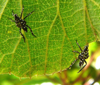 若蟲或成蟲用嘴刺吸汁液,使葉片出現(xiàn)淡白色斑點(diǎn),危害嚴(yán)重時斑點(diǎn)呈斑塊狀,或刺傷表皮,使枝條葉片枯萎。