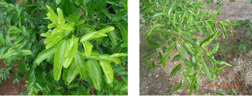 2013年4月下旬,在陜西大荔楊家棟冬棗園,針對(duì)缺素冬棗樹,噴施國(guó)光絡(luò)微2次,間隔15天噴施一次,2013年5月20日,觀察缺素棗樹,葉片轉(zhuǎn)綠,棗吊生長(zhǎng)正常,花蕾分化好。