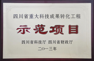 我公司采用自主知識(shí)產(chǎn)權(quán)研發(fā)的科技新產(chǎn)品榮獲2013年度“四川省重大科技成果轉(zhuǎn)化工程示范項(xiàng)目”稱號(hào)。