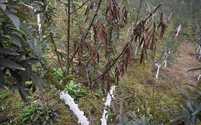 (2)發(fā)現(xiàn)危害嚴重,枝干破損嚴重的樹,需及時清理并集中燒毀或深埋。