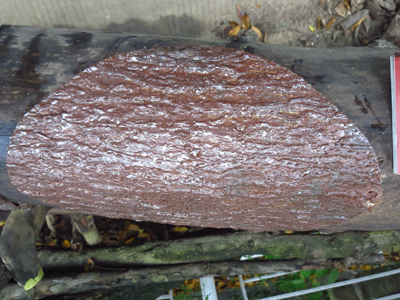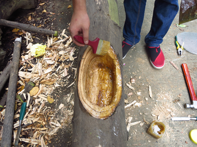 2、ACQ木材防腐劑熟桐油分別涂刷挖好的樹(shù)洞,一種防腐材料涂抹一半的樹(shù)洞(圖2);