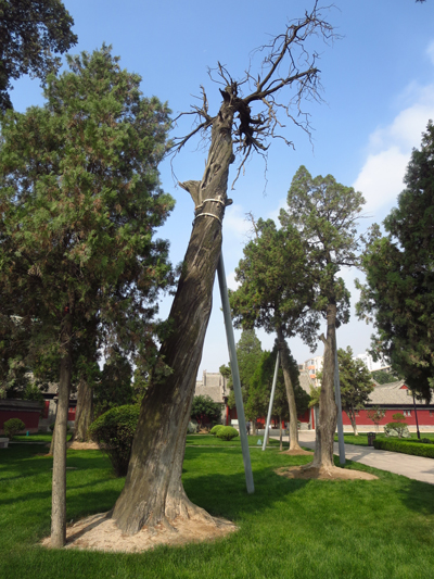 (2)自然環(huán)境造成古柏的衰弱,個(gè)別古柏遭受雷擊,造成樹(shù)干劈裂,一半柏樹(shù)死亡,另一半倒伏。